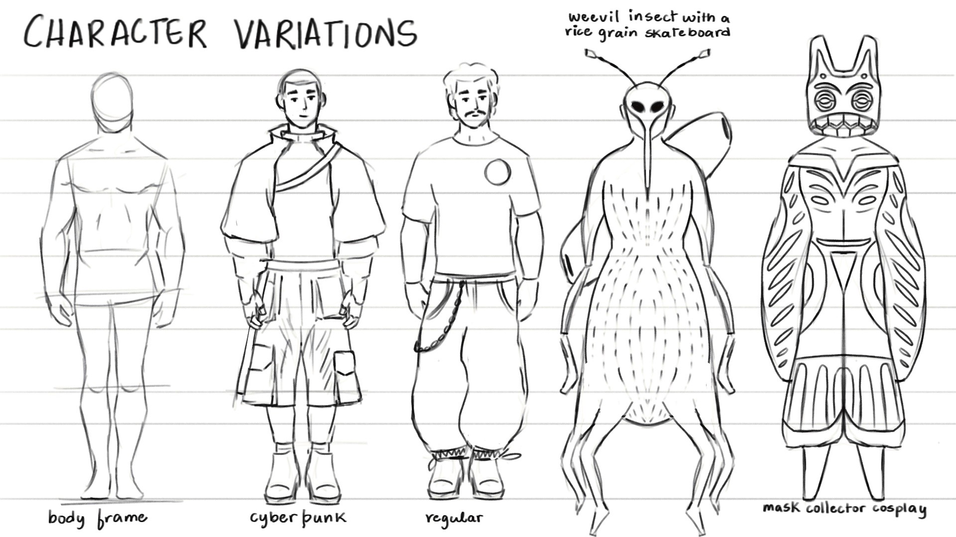A deep fascination towards the weevil - a type of beetle insect - a small but intricately detailed beetle. This blends humanoid and insectoid features. The character’s behaviour reflects a curiosity about ecosystems, relationship between creatures and an appreciation for the beauty in nature’s mechanics.